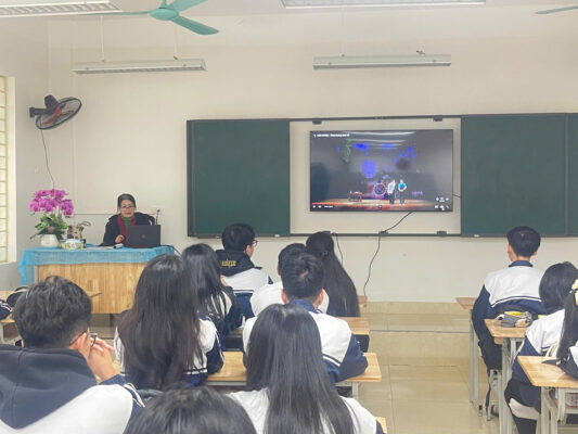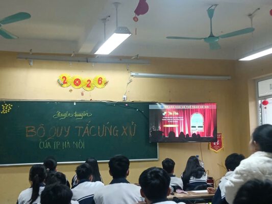 Thông qua video tư liệu do Đoàn trường chuẩn bị, các bạn học sinh đã cùng nhau quan sát, thảo luận về những tình huống ứng xử thực tế. Không còn là những lý thuyết xa lạ, văn hóa người Hà Nội được định nghĩa lại qua chính thái độ của học sinh Minh Phú: