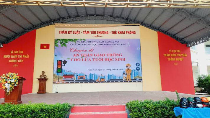 Sáng ngày 03 tháng 10 năm 2025, tại khuôn viên trường THPT Minh Phú đã diễn ra thành công Chương trình Tuyên truyền An toàn giao thông với chủ đề “An toàn giao thông cho lứa tuổi học sinh”. Đây là một hoạt động thiết thực và ý nghĩa, được tổ chức nhằm nâng cao nhận thức, trách nhiệm và kỹ năng tham gia giao thông an toàn cho hơn 1526 em học sinh toàn trường.