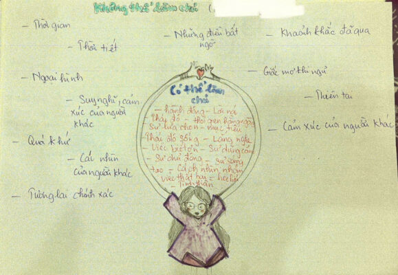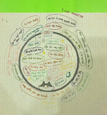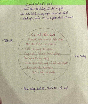 Khi vẽ vòng tròn những điều em có thể làm chủ và những điều vượt ngoài khả năng kiểm soát, em như đang đặt một tấm gương lớn trước chính mình. Mỗi nét bút chậm rãi không chỉ phân chia giới hạn giữa “em” và “không phải em”, mà còn tách bạch giữa những điều cần nỗ lực và những điều cần buông nhẹ. Em bỗng hiểu rằng có những điều, dù em có khao khát đến mấy, cũng không thể điều khiển: suy nghĩ của người khác, dòng đời xoay vần, những bất ngờ đến chẳng báo trước. Và có những điều, chỉ cần em đủ kiên trì và dịu dàng với bản thân, lại có thể thay đổi từng chút một – như cách em đối diện với cảm xúc, thói quen, ước mơ, và cách em nhìn nhận chính mình.