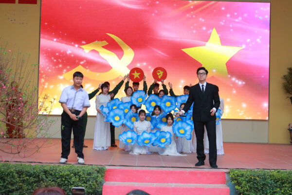 Mở đầu chương trình, cả sân trường như lắng lại qua những thước phim tư liệu quý giá. Hình ảnh người thanh niên yêu nước Nguyễn Ái Quốc sau bao năm bôn ba tìm đường cứu nước, sự ra đời của Đảng Cộng sản Việt Nam ngày 03/02/1930 đã mở ra một chương mới cho lịch sử dân tộc. Từ kiếp sống nô lệ, nhân dân ta dưới sự lãnh đạo của Đảng đã vươn mình đứng dậy, giành lại độc lập, tự do và vững vàng tiến bước trong công cuộc xây dựng đất nước.