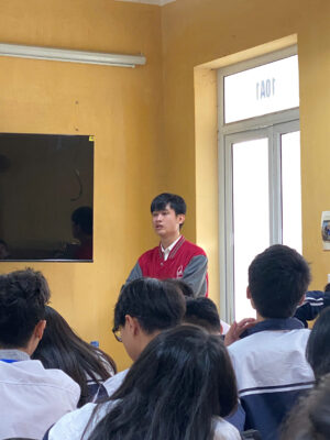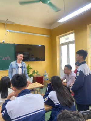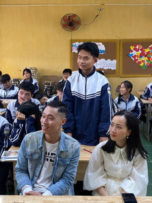 Thế nhưng, điều làm em xúc động nhất chính là khi lớp 10A1 chúng em may mắn được đón các anh chị đến trò chuyện ngay tại lớp học. Khoảnh khắc các anh chị bước vào, cả lớp như sáng bừng lên. Em cảm thấy vừa hào hứng, vừa vinh dự, vừa có chút hồi hộp khó tả – giống như được gặp lại những người anh, người chị trong một gia đình lớn, lâu ngày mới sum họp… Không còn khoảng cách giữa các thế hệ, không còn sự ngại ngùng thường thấy, chỉ còn sự gần gũi, chân thành và ấm áp lan tỏa trong từng lời chia sẻ.