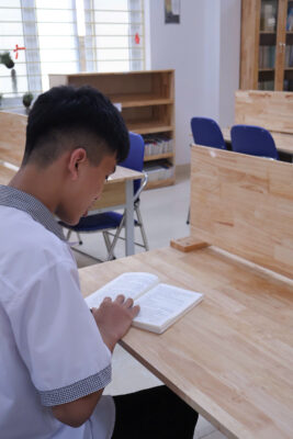 Học sinh: Những nhóm bạn cùng nhau thảo luận về một cuốn sách hay, hay những giây phút yên tĩnh tự mình khám phá một chân trời mới. Những chiếc áo đồng hồ đỏ đặc trưng của học sinh Minh Phú rạng rỡ bên những kệ sách đã tạo nên một bức tranh học đường đầy sức sống.