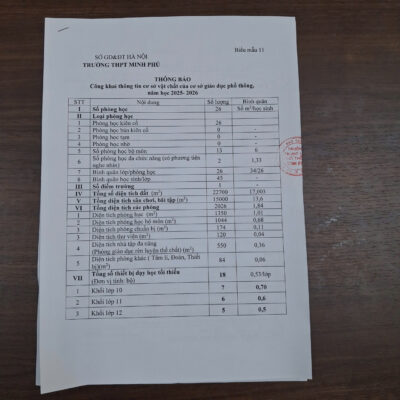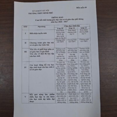 Thực hiện quy chế công khai đối với cơ sở giáo dục của Bộ Giáo dục và Đào tạo, Trường THPT Minh Phú xin trân trọng thông báo các nội dung cam kết về chất lượng giáo dục, điều kiện cơ sở vật chất và đội ngũ nhân sự cho năm học 2026 – 2027 như sau:
