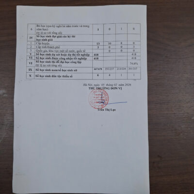 Trình độ: 100% giáo viên đạt chuẩn và trên chuẩn (trong đó có 22 Thạc sĩ).