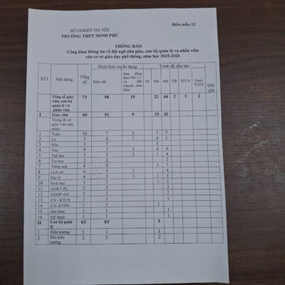 2. Đội ngũ cán bộ, giáo viên và nhân viên (Biểu mẫu 12)
