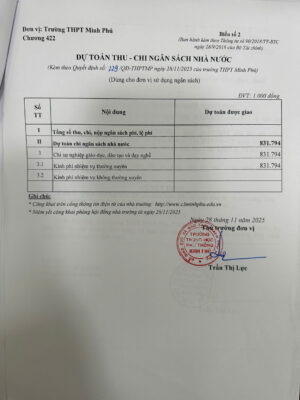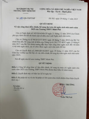 Trường THPT Minh Phú trân trọng thông báo nội dung điều chỉnh và bổ sung dự toán,