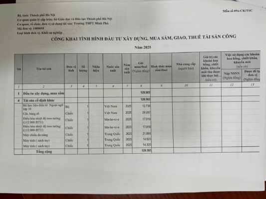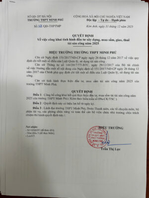 Nhằm đảm bảo tính minh bạch và trách nhiệm giải trình trong việc đầu tư, trang bị cơ sở vật chất phục vụ công tác dạy và học, Trường THPT Minh Phú trân trọng thông báo công khai tình hình tài sản công năm 2025.