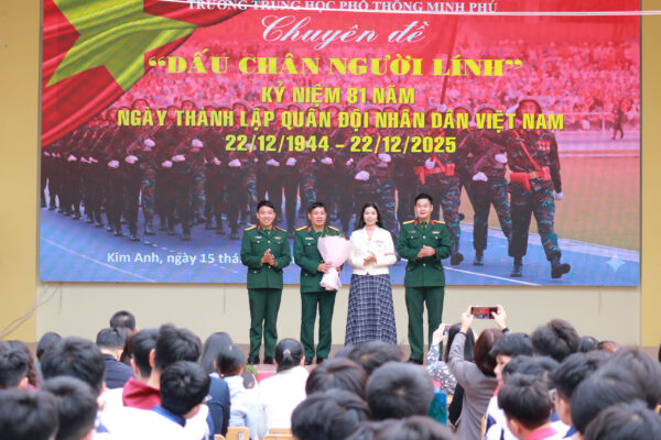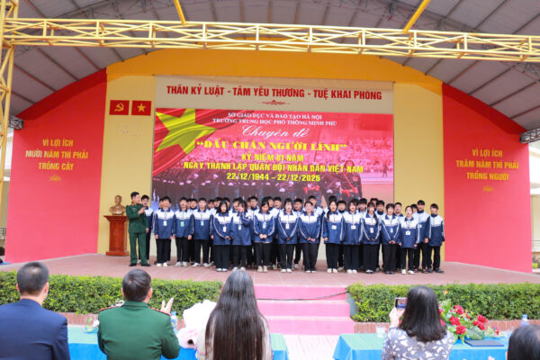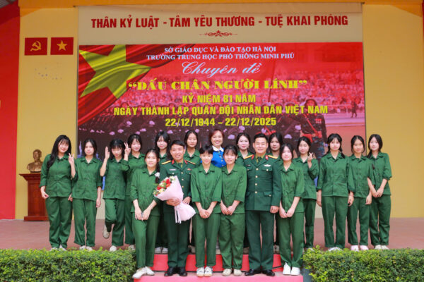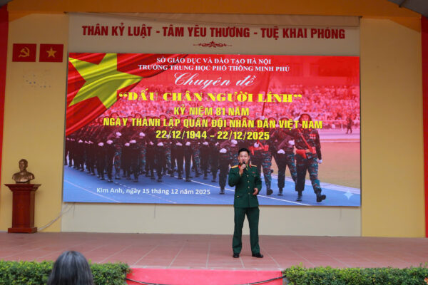 Hòa trong không khí thiêng liêng và trang trọng của cả nước, sáng ngày 15/12/2025, Trường THPT Minh Phú đã long trọng tổ chức Chuyên đề ngoại khóa: “Dấu chân Người Lính” nhằm tri ân sâu sắc những hy sinh cao cả và sự đóng góp to lớn của các thế hệ cán bộ, chiến sĩ Quân đội Nhân dân Việt Nam (QĐNDVN) trong suốt 81 năm xây dựng, chiến đấu và trưởng thành.